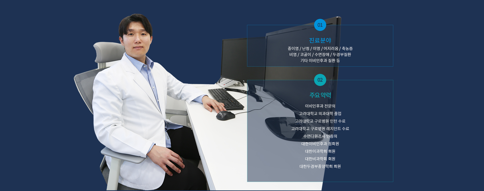 중이염, 난청, 이명, 어지러움, 축농증, 비염, 코골이, 수면장애, 두경부질환, 기타 이비인후과 질환 등
