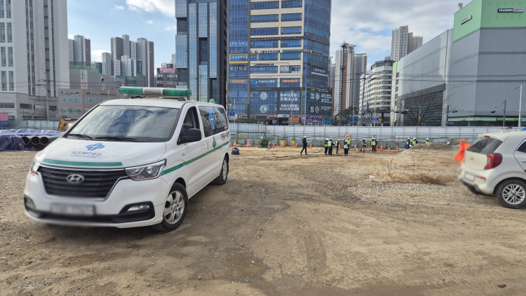 히즈메디병원 건너편에 지어질 대우건설의 풍무역세권 푸르지오 건설현장에서 "재난대비 모의훈련"이 진행되었습니다.