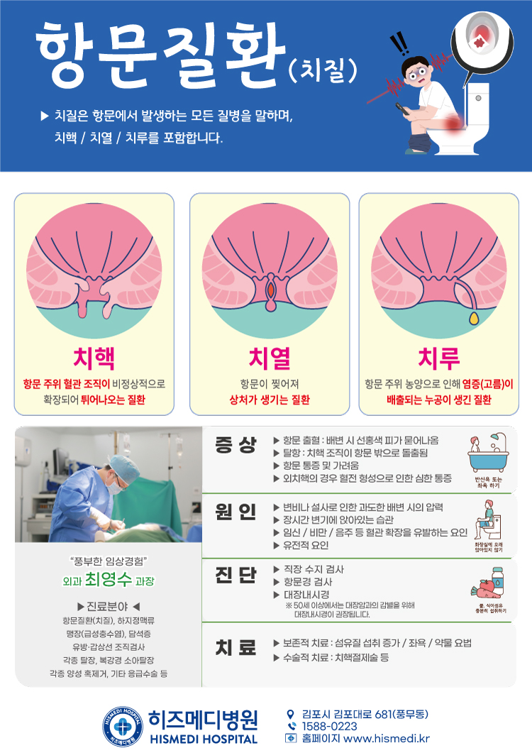 COPYRIGHT © 2018 히즈메디병원. All Rights Reserved.| 항문질환(치질) - 치핵 / 치열 / 치루 |