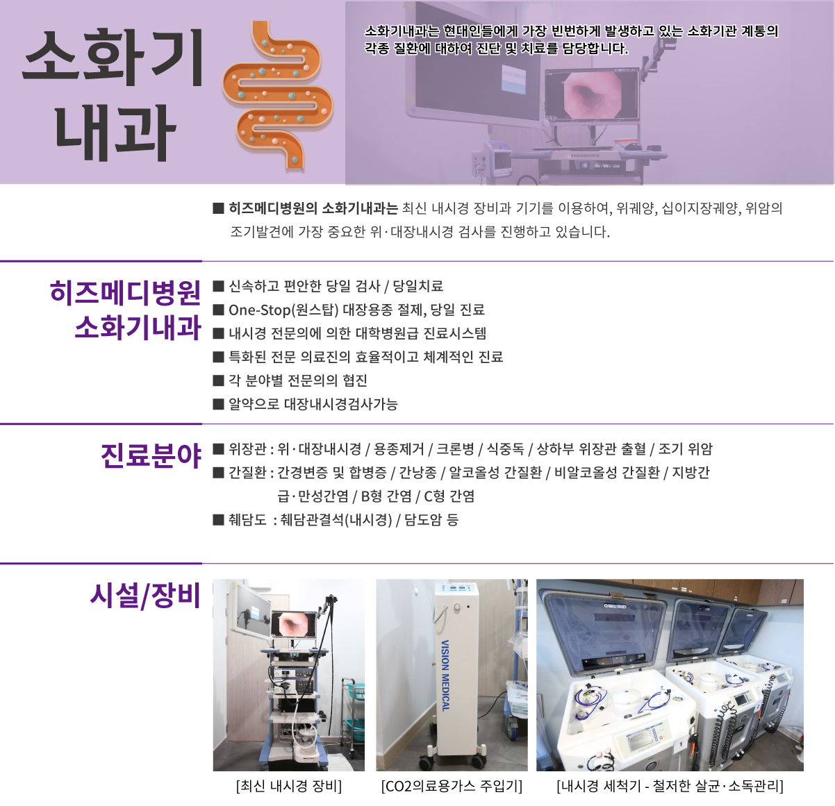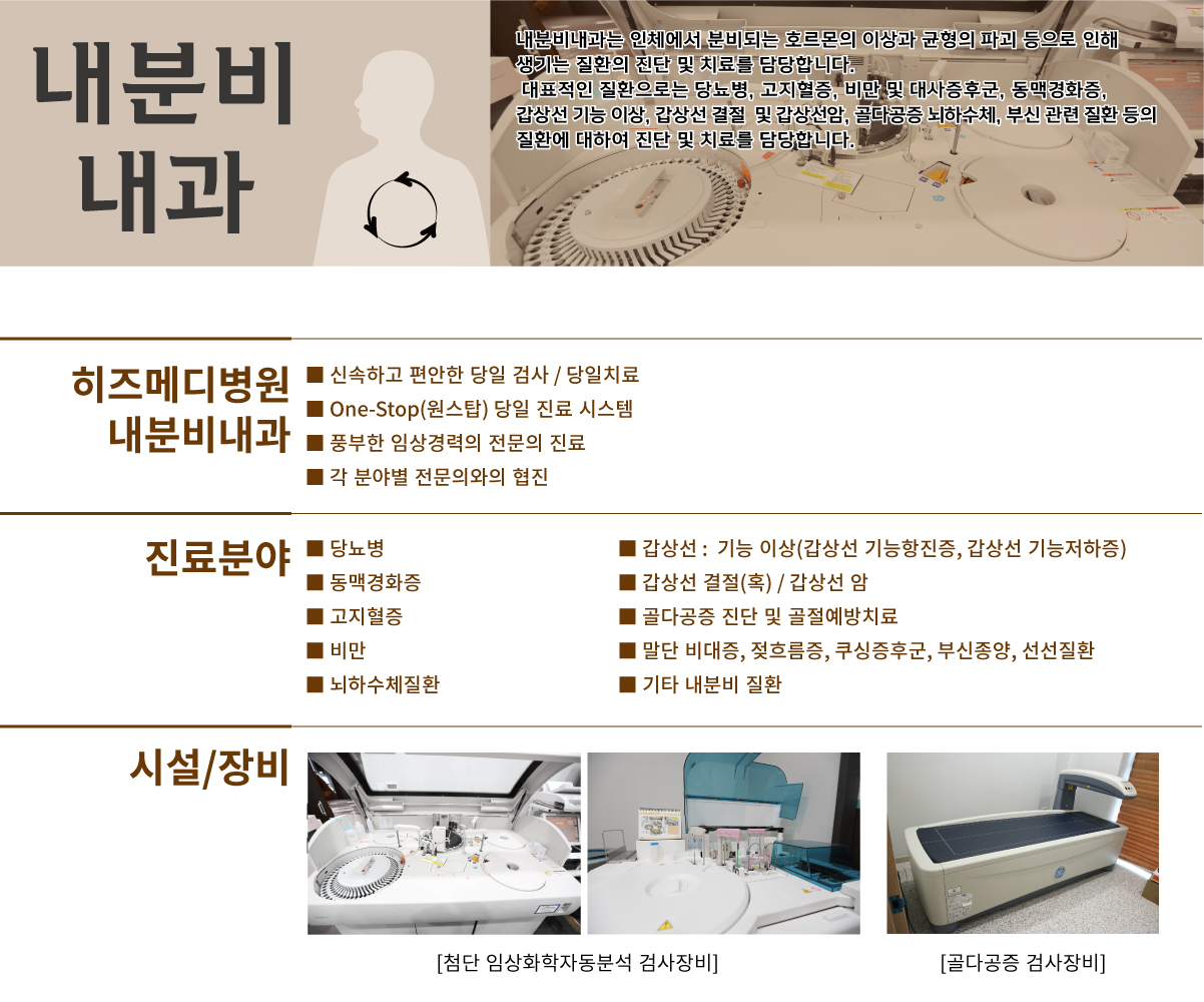 소화기, 간암, 내분비 클리닉, 호흡기 알레르기, 비만 부종 클리닉, 심혈관 질환