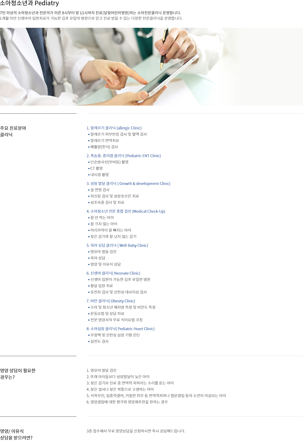 - 호흡기, 소화기, 알레르기, 신생아, 영유아검진 및 육아상담