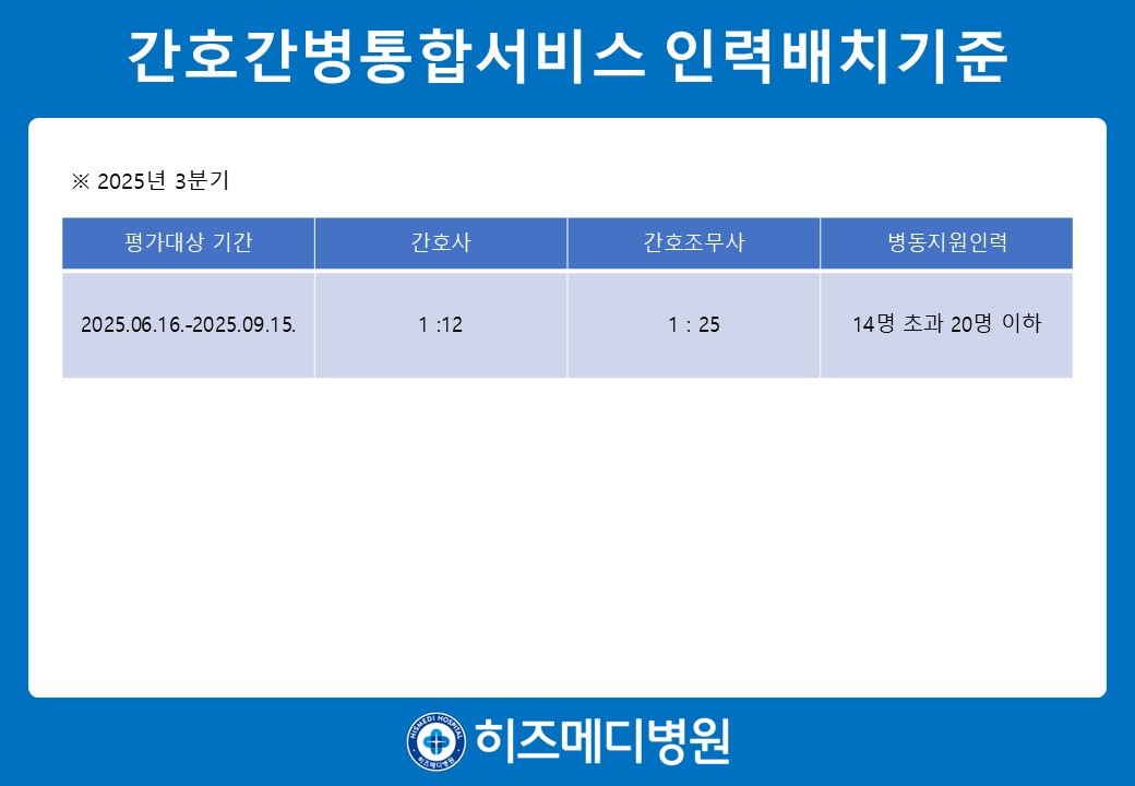 간호간병통합서비스 인력배치기준(2025년 3분기)