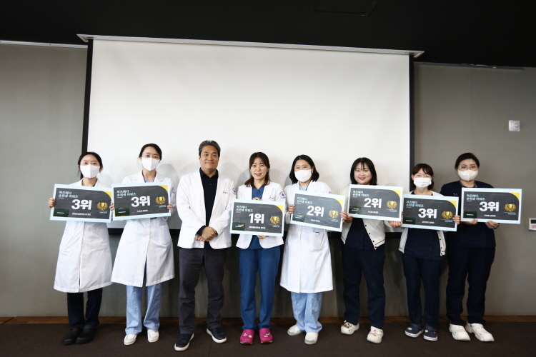 그리고, 지난 12월에 진행한 손위생 캠페인에서 우수한 성적을 거둔 분들에게 드리는 "히즈메디 손위생 어워즈"가 있었습니다. 마취통증의학과 최우희 과장 (1등) 수술실 박선녀, 주사실 정선화 (2등) 12w 김지애, 8w 이한나, 외과 최영수 과장, 수술실 이진은, 검진센터 김윤전, 진단검사의학과 이가연, 내시경실 김수경, 영양팀 황명희 (3위)