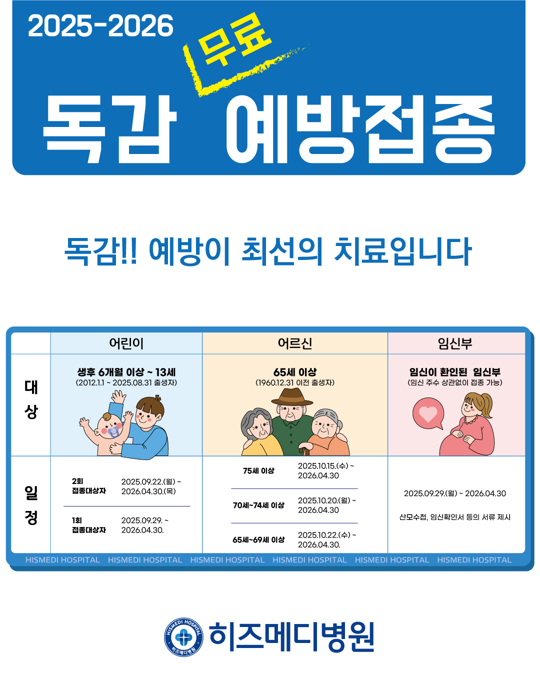 COPYRIGHT © 2018 히즈메디병원. All Rights Reserved.[독감] 무료 예방접종 및 패스트트랙 운영안내 |