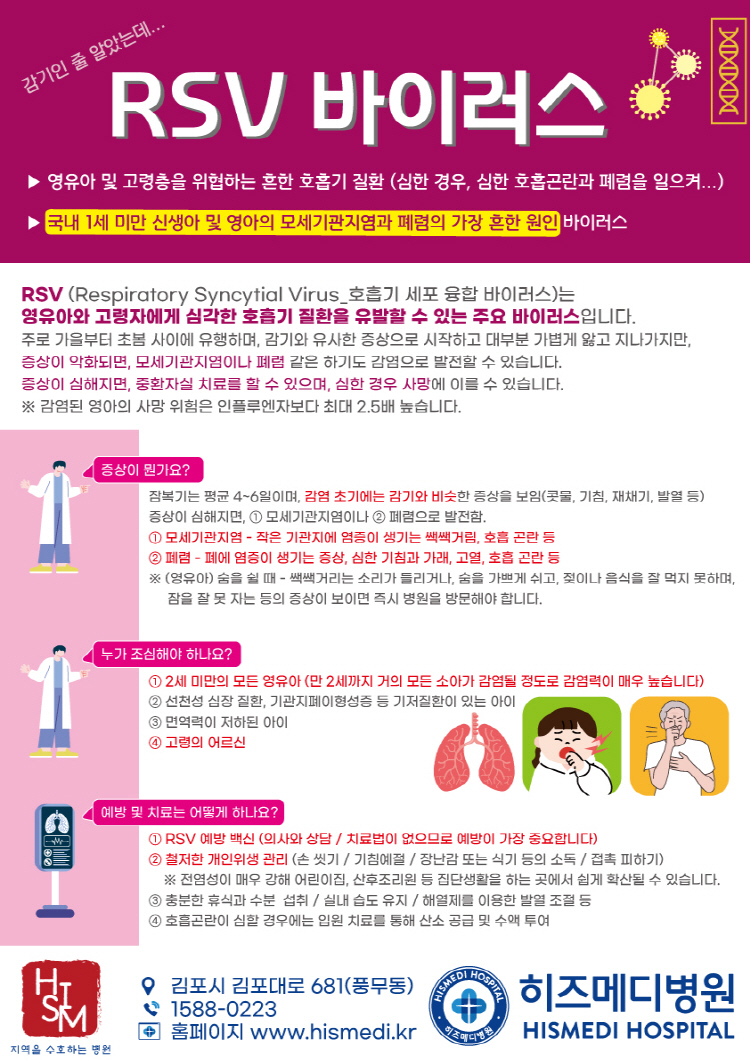 RSV (Respiratory Syncytial Virus_호흡기 세포 융합 바이러스)는 영유아와 고령자에게 심각한 호흡기 질환을 유발할 수 있는 주요 바이러스입니다.