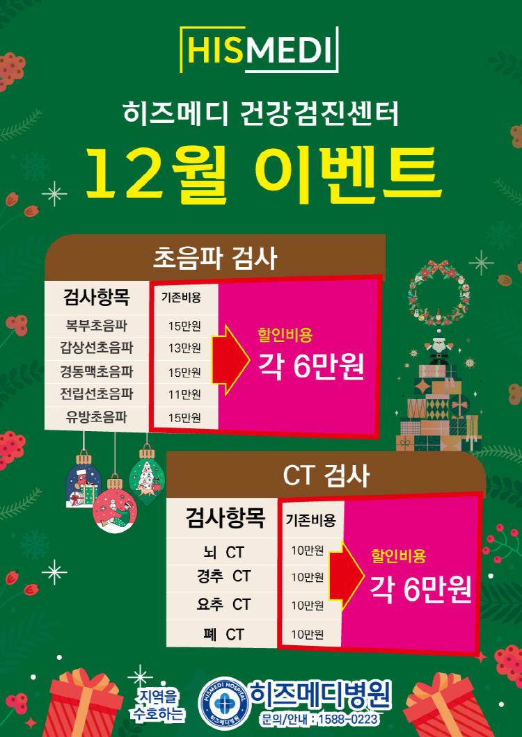 COPYRIGHT © 2018 히즈메디병원. All Rights Reserved.| 건강검진센터 12월 이벤트 안내 |